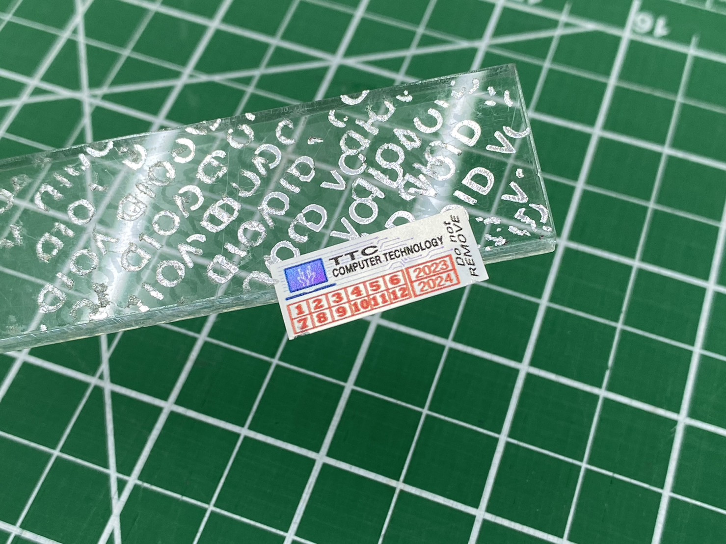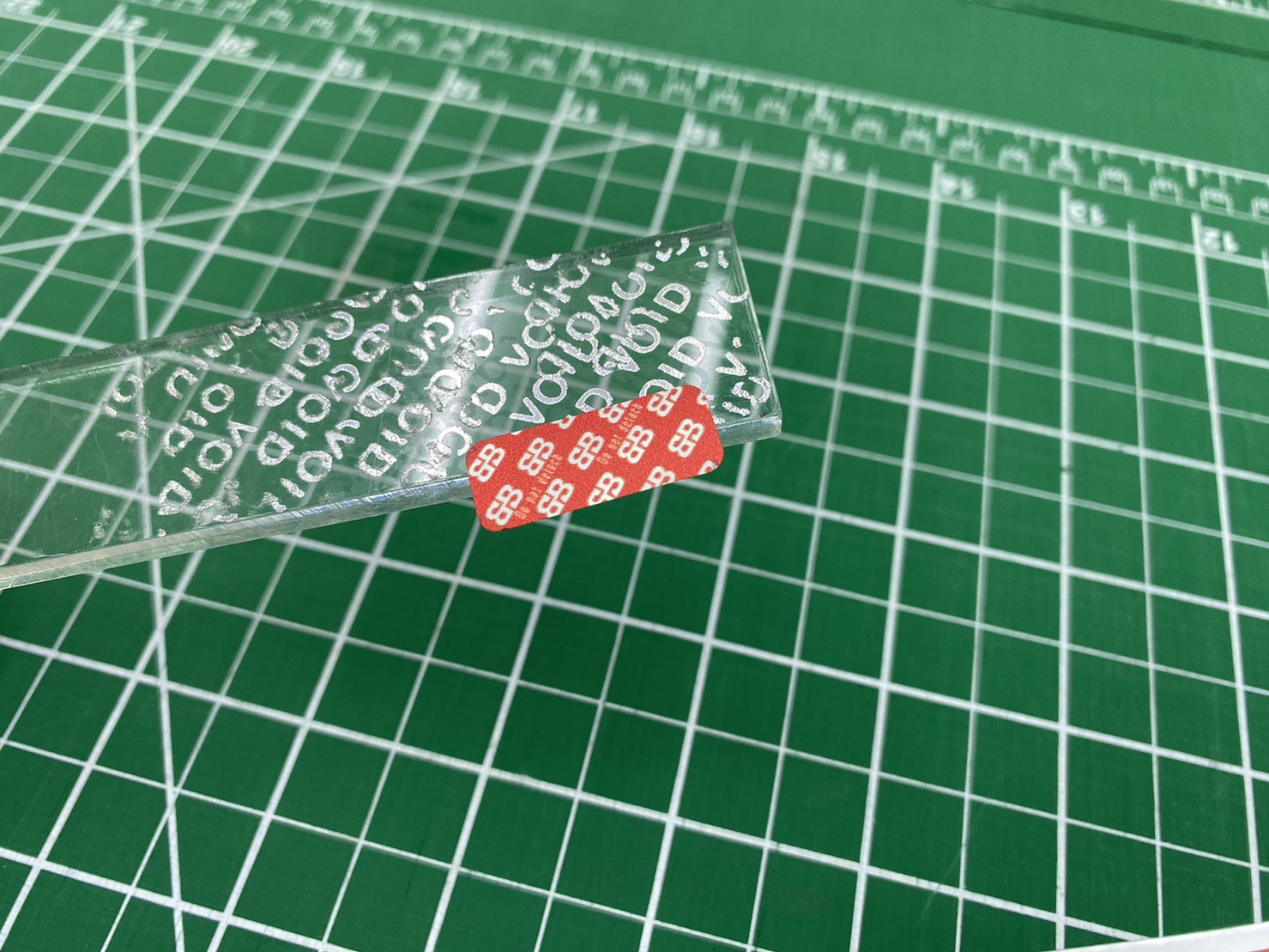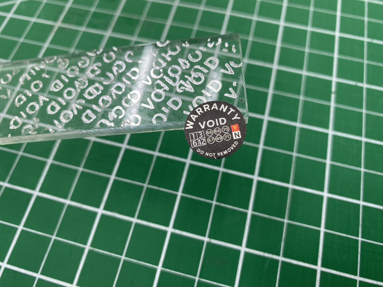 - ควรทำการทดสอบก่อนใช้งานจริง โดยติด สติ๊กเกอร์วอยด์เงิน ลงบนพื้นผิวและลองดึงออก เพื่อดูว่าทิ้งร่องรอยหรือไม่
