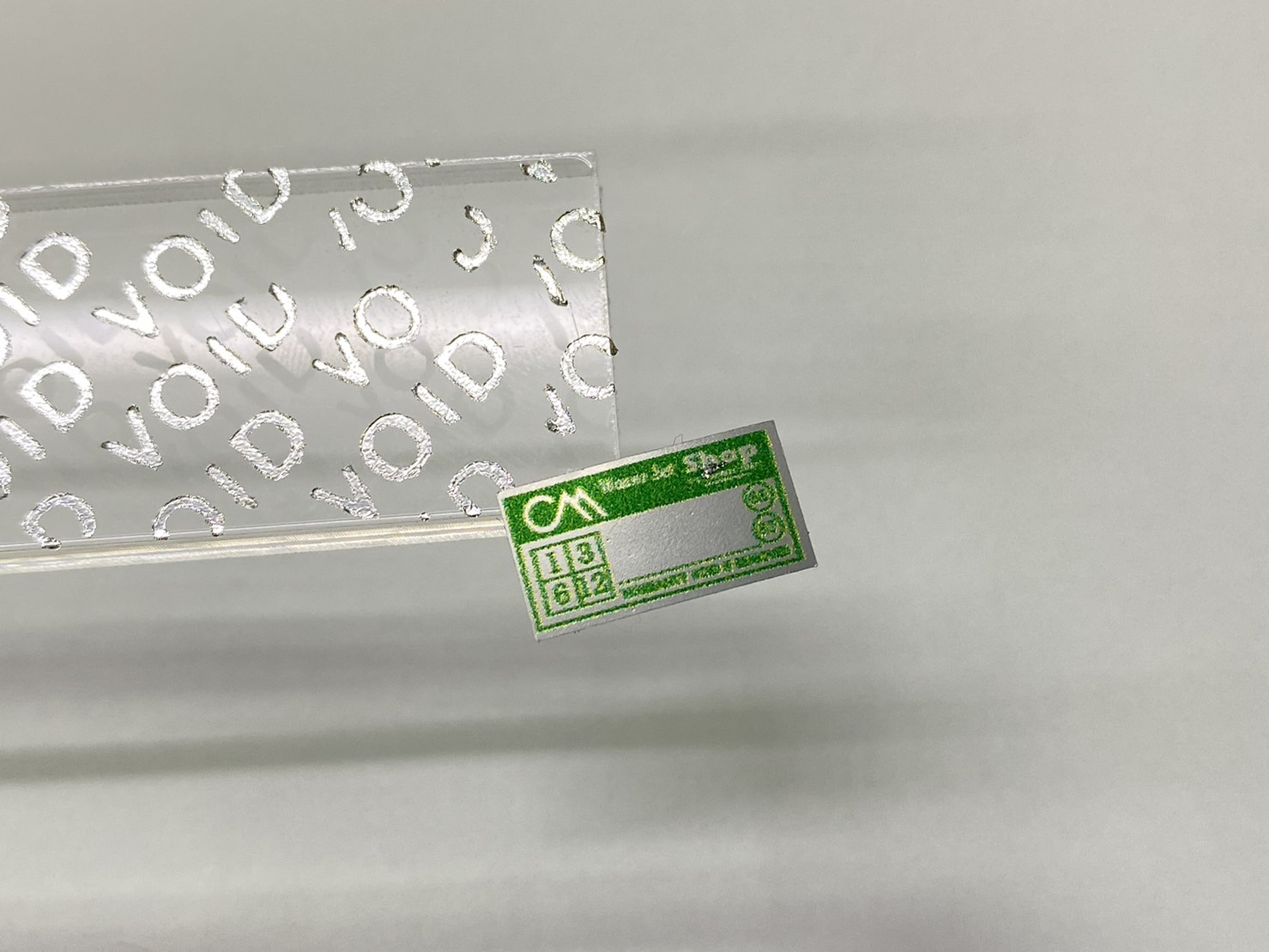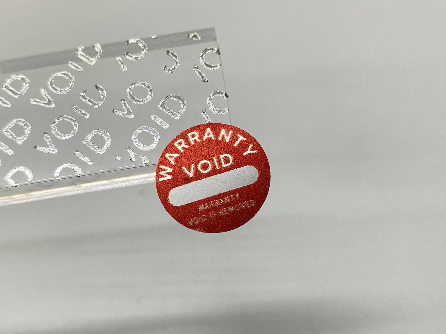การเลือกใช้สติ๊กเกอร์วอยด์ที่มีคุณสมบัติเฉพาะทาง เช่น สติ๊กเกอร์วอยด์ , สติ๊กเกอร์เปลือกไข่ ป้องกันการแกะก่อนถึงมือลูกค้า หรือสติ๊กเกอร์ที่ฉีกแล้วทิ้งร่องรอยอย่างชัดเจน ถือเป็นวิธีการป้องกันการปลอมแปลงที่ได้ผล สินค้าที่ติดสติ๊กเกอร์ลักษณะนี้หากมีการแกะหรือดึงออกจะทิ้งรอย “VOID” หรือ “Open” เอาไว้ ซึ่งเป็นข้อพิสูจน์ได้ทันทีว่าสินค้าอาจถูกเปิดแล้ว นอกจากนี้ยังมีสติ๊กเกอร์วอยด์แบบพิเศษ เช่น สติ๊กเกอร์วอยด์ ผิวด้านป้องกันรอยนิ้วมือ หรือ สติ๊กเกอร์วอยด์ ตรวจสอบผ่านระบบโค้ดลับ ที่สามารถสแกนเพื่อตรวจสอบแหล่งที่มาได้ในทันที